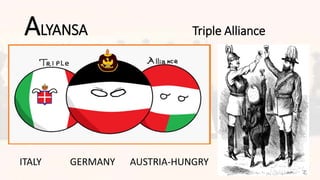 Ang mga pangunahing alyansa ng Unang Digmaang Pandaigdig ay nagbunga ng pag-asa ng anim na bansa para sa balanse ng kapangyarihan sa Europa. Alyansa ANG UNANG DIGMAANG PANDAIGDIG Ang Balance Power sa Europa ay nabago nang sumanib ang Germany at Nasyonalismo Italy Binuo ni Bismark ang Dual Alliance kung. Palakaran ng pamahala pamamagitan ng tuwirang pagsakop ng isang mas.