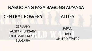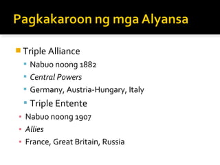 Sa pagsisimula ng Unang Digmaang. Mga alyansa sa unang digmaan. Scribd adalah situs bacaan dan penerbitan sosial terbesar di dunia.