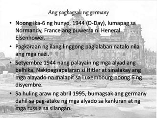 Kaugnay na Artikulo. ANG WAKAS NG IKALAWANG DIGMAANG PANDAIGDIG Sa kumperensya sa Postdam tinalakay nina. Hunyo 6 1944 D.