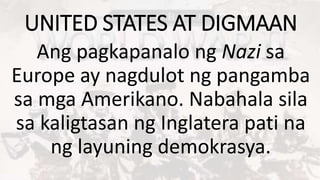 Mga hulíng opensiba at wakas ng digmaan. Ang video na ito ay tungkol sa DIGMAAN SA EUROPE noong WWII. Habang pinag-uusapan ang kapayapaan sa pagitan ng Amerika at Japan binomba ng mga eroplanong Hapon ang Pearl Harbor Hawaii noong Disyembre 7 1941.
