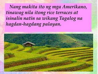 Ang Rice Terraces ng Cordillera Pandaigdig na Pamanang Pook. About Press Copyright Contact us Creators Advertise Developers Terms Privacy Policy Safety How YouTube works Test new features Press Copyright Contact us Creators. Alin sa mga sumusunod na likas na.