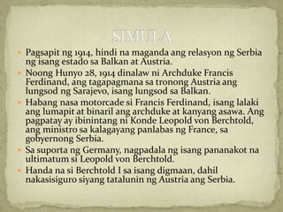 PAALALA Umiwas sa mga taong may sintomas ng ubo a. Epekto Ng Unang Digmaang Pandaigdig Essay. Nais ng bansang Serbia na magkaroon ng estadong kinabibilangan ng mga Slavs sa silangang Europe.